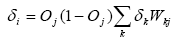 Para las unidades ocultas (siendo δk el gradiente de error de la unidad k que dispone de conexiones con la unidad oculta j):