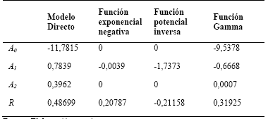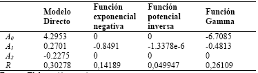 En los modelos directos [22] se integra, en una misma ecuación, los valores explicativos que se consideran en el proceso de decisión. Su fórmula general es: