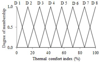 Table 2: Interval of fuzzy sets for the output variable Thermal comfort index (%).
