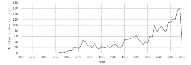 Figure 3: Scientific Production related to Operations Research in Health Care (Scopus 1952-2016).