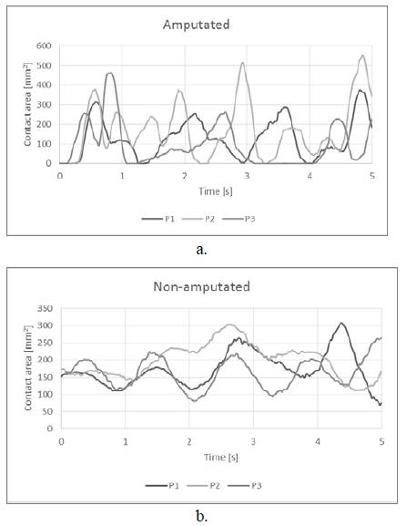 Figure 8: Contact area. a. Amputated, b. Non-amputated
