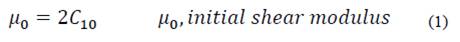 The material properties are assigned in ABAQUS V6.12; the cortical bone, the socket and the stump were modeled as homogeneous, isotropic materials with an elastic modulus of E=15𝐺𝑃𝑎, 𝐸=1.5𝐺𝑃𝑎 and 𝐸=25𝐾𝑃𝑎 respectively; their Poisson’s ratio are 𝑣=0.3 for the cortical bone and the socket, and 𝑣=0.475 for the soft tissue [11,39]. The cartilage was modeled as a homogeneous, isotropic, Neo-Hookean hyperelastic material. The Abaqus Neo-Hookean form was used in the process, with a shear modulus of 𝐺=13.6𝑀𝑃𝑎 and a bulk modulus of 𝐾=1359𝑀𝑃𝑎; the material constitutive parameters were calculated using eq (1) - (2) [40], 𝐶 10 =6.8𝑀𝑃𝑎 and 𝐷 1 =1.4𝑥 10 −9 𝑃𝑎 [22].