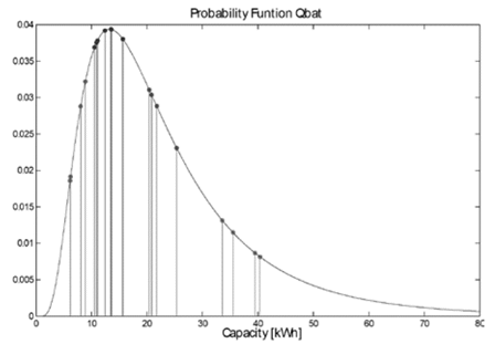 Figure 4: Probability function of expected battery capacities of electric vehicles.