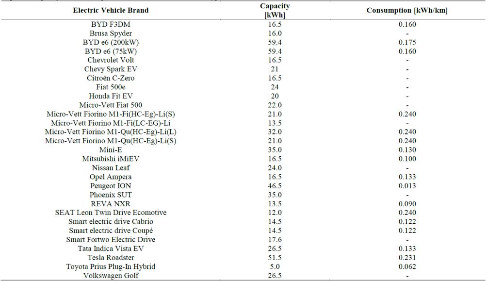 In order to consider the variability of the batteries used by electric vehicles, the expected battery capacities are modeled by means a probability distribution [3], generating random samples based on the characteristics of electric vehicles available in the market, as shown in Table 3 [3].
