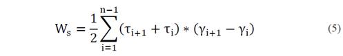 where n = number of load increments imposed during cyclic loading on the stress-strain curve until ru = 1 [11]; (i and (i+1 = applied shear stress at load increment i and i+1, respectively; and (i and (i+1 = shear strain at load increment i and i+1, respectively. Simply stated, Eq. (4) employs the trapezoidal rule to compute the area bounded by the hysteretic stress-strain loop.