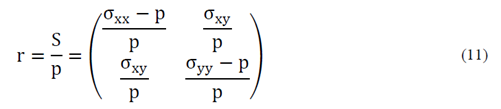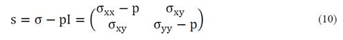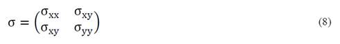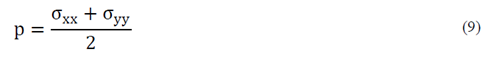 where σxx is the stress in the plane x, σyy is the stress in the plane y, σxy is the shear stress in the plane xy and I is the unitary matrix.
