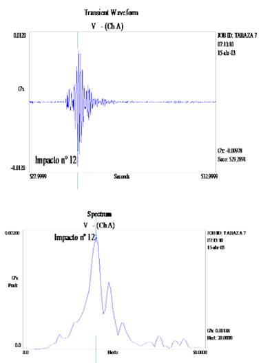 Figura 5: Ampliación del impacto nº 12 y espectro del mismo.
