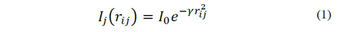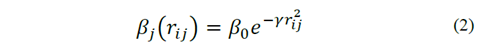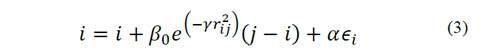 Donde I 0 es la intensidad de la luz y β0 es el atractivo original de la luciérnaga cuando r = 0. Con respecto al coeficiente de absorción γ, si γ→0 el atractivo de una luciérnaga i coincide con su brillo (aptitud), es decir, el brillo de una luciérnaga no se ve reducido cuando es vista por otra luciérnaga. En el caso de que 𝛾→∞ significa que el valor del atractivo es cercano a cero cuando es vista por otra luciérnaga por lo cual las luciérnagas no se sentirán atraídas por esta y se moverán de manera aleatoria. De esta manera, γ determina la velocidad de convergencia y el comportamiento del algoritmo y β controla el atractivo. Estudios previos indican que valores de 𝛽 0 =1 puede ser utilizado en la mayoría de las aplicaciones [44].