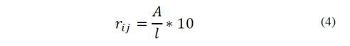 La distancia entre dos luciérnagas es definida a través de la eq. (4). El parámetro A es el número de arcos diferentes entre i y j. El parámetro l indica el tamaño del problema (número de fragmentos). El valor de r varía dentro del intervalo [0,10] según la eq. (4) (ver [16]).