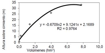 La evolución de caudales considerando una altura de presa de 33m, desde cimiento, se exponen en el gráfico adjunto (Fig. 3). Donde se aprecia una muy buena correlación entre los resultados de Costa y la expresión de Hagen en la versión de Pierce M.W.