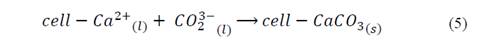 The possible reaction in the nucleation sites mediated by Ca2+ ions by the mechanism showed in the eq. (3) to eq. (5) [33]. In first place, the metallic ions from the medium might have stoichiometrically interacted with the charges groups of the bacterial surface structures, allowing the mineral deposition and generating bacillary walls, as observed in Fig. 5 to Fig. 7 [34].
