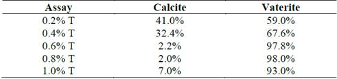 Table 1: Percentage of calcite and vaterite in crystalline phase of the obtained precipitates in the tests at different tryptone concentrations.