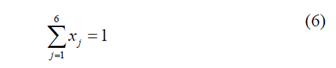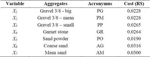 summing the quantity (kg) of aggregate used (x j ), which must be equal to 1 (percentage);
