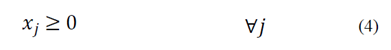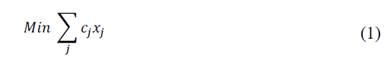 The purpose of the optimization problem is to determine the lowest cost for manufacturing (cj) Concrete Paver Blocks, given the mathematical expression of Eq. (5) and subject to the restrictions described by equations (6), (7), (8) (9) and (10).