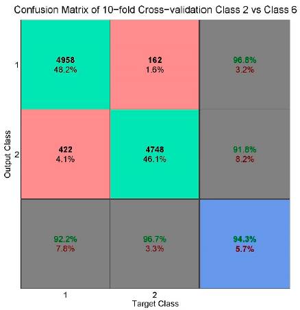 Figure 5: 10-fold Cross-validation Confusion Matrix (Class 2 vs Class 6).