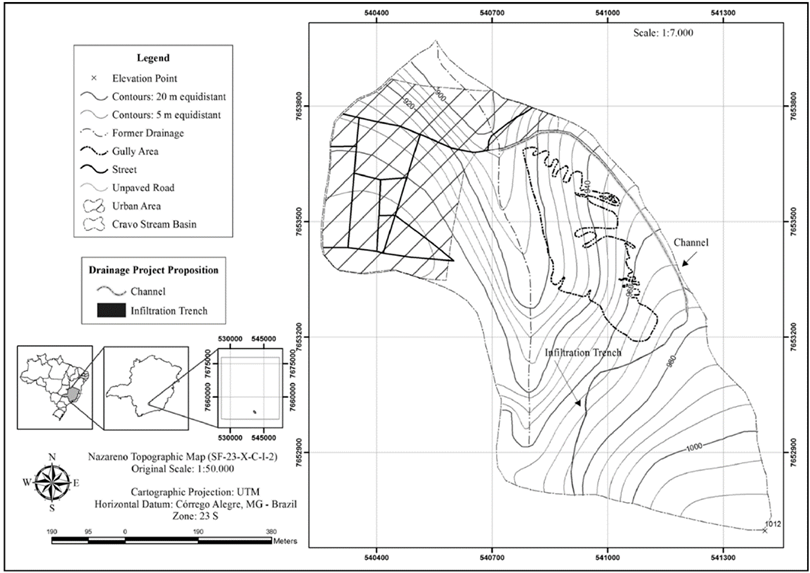Figure 5: Drainage project design for the Cravo Stream gully - Nazareno-MG.