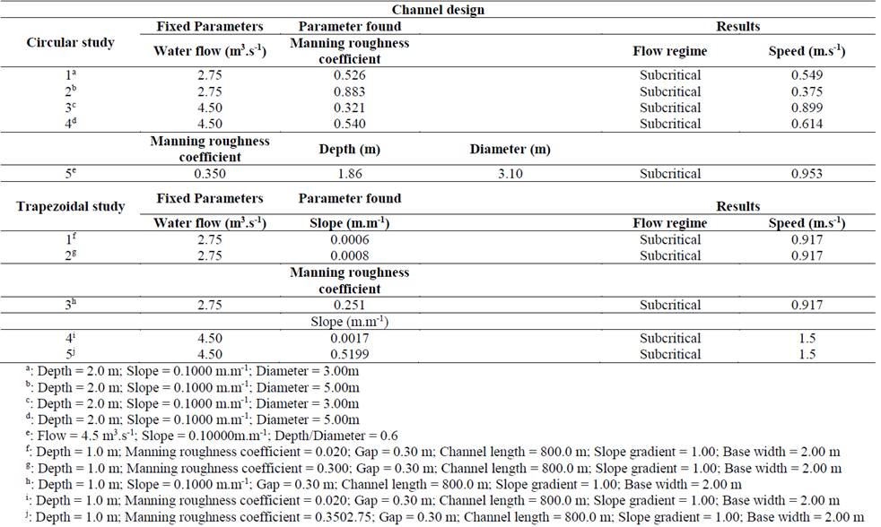 All simulations with circular channels were performed with an average steepness of the study area. As such, the channel configuration alteration in conjunction with slope changes was studied in addition to verifying the relationship between the channel roughness and flow rate (Table 3). There is a relationship between the channel roughness, the slope and the runoff velocity. As the channel roughness increases (covering), there are more possibilities to build a channel in a more inclined location while maintaining the same flow velocity.