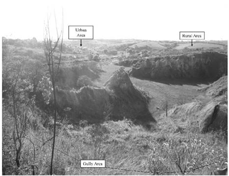Figure 1: Cravo Stream gully, near urban and rural areas of Nazareno/MG.