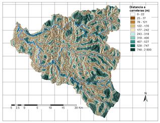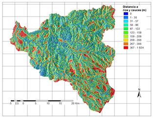 A partir de la información disponible, se han seleccionado 17 factores potenciales de tres grandes grupos: 1. Distancia a elementos clave; 2. Suelos/Geología; 3. Factores derivados de la topografía. Los factores así obtenidos se explican brevemente en la Tabla 3 y su representación gráfica se presenta de la Fig.2 a la Fig.18.