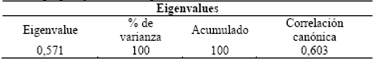 Tabla 11: Valores propios y correlación para la función discriminante.