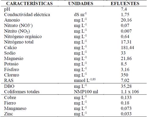 Tabla 1: Características del efluente de esgoto tratado utilizado para el riego.