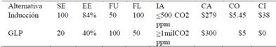 Al variar las condiciones del subsidio lo que básicamente se hizo es alterar el Costo de Operación (CO) de ambas cocinas. Lo que influye en la valoración que el decisor dio a cada de las opciones en los criterios restantes. En la Tabla 4 se presentan los distintos Costos de Operación mensuales de acuerdo al escenario.