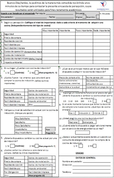 Model for decision-making, change of LPG stove to induction stove, case in Ecuador