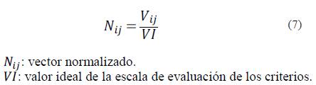 Luego se procede a normalizar los 𝑉 𝑖𝑗 a través de la ec. (7):