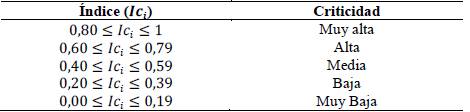 Los autores además proponen una escala para clasificar los FCE según su índice de criticidad ( 𝐼𝑐 𝑖 ), tal y como muestra la Tabla 2.