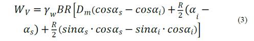 where 𝛼 𝑠 = 𝑠i𝑛 −1 ( 𝐷 𝑠 /𝑅), 𝛼 𝑖 = 𝑠𝑖𝑛 −1 ( 𝐷 𝑖 /𝑅), 𝐻 is the maximum expected water level of the reservoir, ℎ 1 is the depth to the radial gate, ℎ is the height of the gate, 𝐵 is the width of the gate, 𝑅 is the radius of the gate, 𝛾 𝑤 is the specific weight of water and 𝐷 𝑚 is depth to the point of curvature of the gate. The line of action of the resultant hydrostatic load on radial gates is assumed to pass through the point of curvature of the gate [16] at an orientation:
