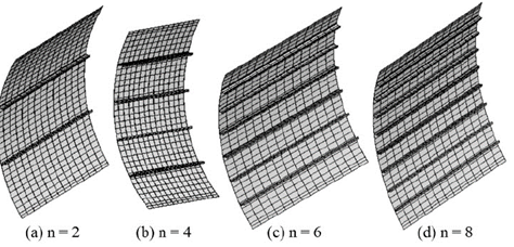 Figure 7: Models considering transversal stiffening (n = 2, 4, 6 and 8 stiffeners).