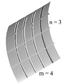 Figure 9: Model considering combined stiffening (longitudinal m = 4 and transversal n = 3).