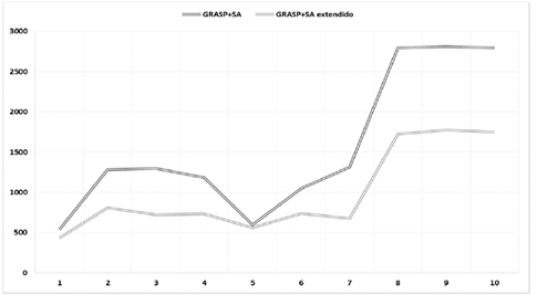 Figura 13: Gráfico comparativo GRASP+SA vs. GRASP+SA extendido.