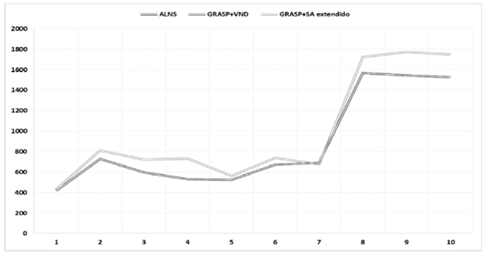Por último, se efectúa la comparación entre los costos de las soluciones del método GRASP+VND [17] y la técnica propuesta en el presente trabajo, es decir, el GRASP+SA extendido.