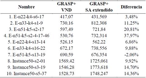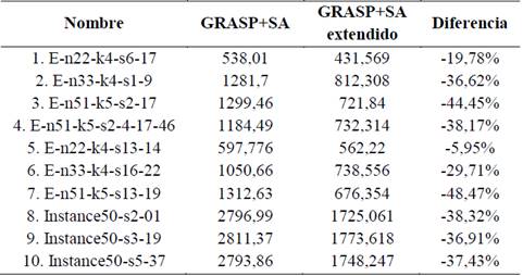 Tabla 5: Resultados GRASP+SA vs. GRASP+SA extendido.