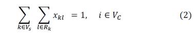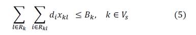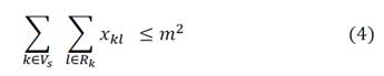 Respecto al conjunto de aristas 𝐴, se compone por los arcos (𝑖,𝑗) que representan el camino que conecta a los vértices al cual se le asocia un costo por su recorrido 𝐶 𝑖𝑗 ; en el que estos costos satisfacen la desigualdad triangular en los dos escalones. A cada uno de los clientes 𝑖∈𝑉 𝐶 se le asocia una demanda 𝑑 𝑖 . Los vehículos tienen una capacidad limitada 𝑄 1 y 𝑄 2 , para el nivel 1 y 2 respectivamente. El número total de vehículos en el primer escalón será de 𝑚 1 y para el segundo de 𝑚 2 . Además, cada satélite 𝑘∈𝑉 𝑠 tiene una capacidad 𝐵 𝑘 la cual restringe la cantidad de demanda que llega a este desde las rutas de primer nivel. Como última limitante se tiene que 𝑚 𝑘 vehículos del primer nivel están disponibles en cada satélite 𝑘∈𝑉 𝑠 .