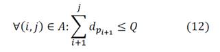 A simboliza el conjunto de los arcos 𝑖,𝑗 , 𝑖<𝑗, que representan los viajes factibles, es decir los viajes que cumplen con la siguiente restricción de carga: