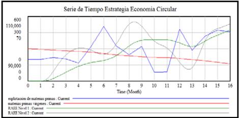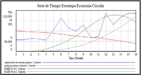 Figura 5: Simulación del modelo con la estrategia de economía circular con los valores de las tasas = 0.