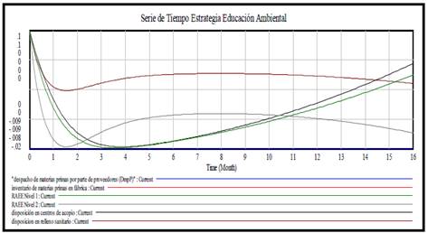 Figura 8: Simulación del modelo con la estrategia de educación ambiental con los factores de educación con valores = 0.
