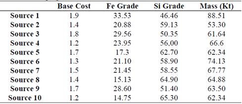 Cost was composed by base cost and an increment cost, due to a distance between the sources feeds. Figure 2 shows the proprieties of source with will compound the desired solution and targets shown in Table 1.