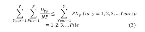 𝐷 𝑌𝑃 = Distance between the piles of the year;