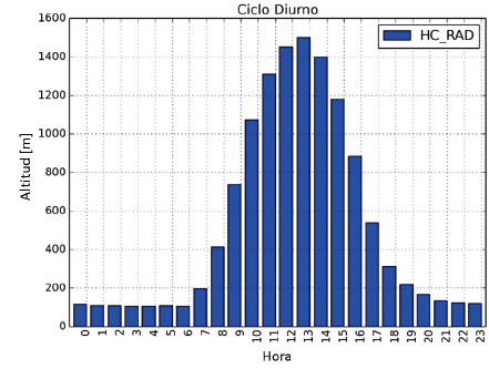 Figura 4: Ciclo diurno típico de la altura capa de mezcla en el Valle de Aburrá, periodo febrero de 2013- febrero de 2016.