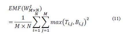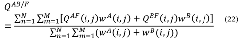 Finally, for input images 𝐴 and 𝐵, the final weighted performance measure 𝑄 𝐴𝐵/𝐹 with respect to the fused image 𝐹 is estimated as: