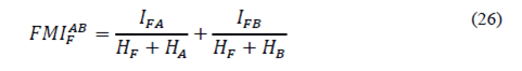 where 𝑃 𝐹𝐴 and 𝑃 𝐹𝐵 are the joint distribution between the fused image and each input image. 𝑝 𝐹 , 𝑝 𝐴 , and 𝑝 𝐵 are the marginal distributions. The FMI is defined as: