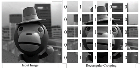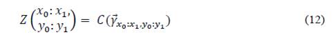 Equation (21) describes stage 1, where 𝑍 is the binary mask matrix, the range ( 𝑥 0 : 𝑥 1 , 𝑦 0 : 𝑦 1 ) is the image portion of the sliding window, 𝐶 is the binary classifier, and 𝛾 𝑥 0 : 𝑥 1 , 𝑦 0 : 𝑦 1 is the ratio of the feature vector of input images 𝐴 and 𝐵 for the sliding window in the range ( 𝑥 0 : 𝑥 1 , 𝑦 0 : 𝑦 1 ).