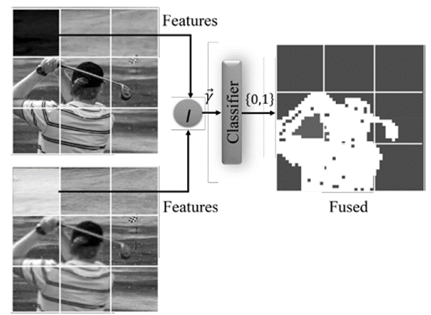 Another approach for dealing with the selection of focused regions in images is the segmentation approach. S. Li et al. [17] proposed a method that uses morphological filtering for rough segmentation of the images based on an initially estimated focus map. The method then uses the image matting technique to refine the segmentation results and a merging process to generate the final image. Another segmentation approach was proposed by M. Nejati et al. [18], based on a training and a testing phase. The training phase constructs a dictionary using focus information maps from local patches of source images. Each pixel from each input image is classified as in focus or not in focus. The final image results from pixel fusion according to a decision map that indicates which source image must be used to obtain the pixel intensity value. Overall, although the segmentation/optimization-based methods applied to the problem of image fusion generate adequate results, they involve a high computational cost.