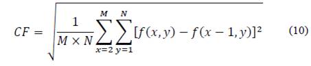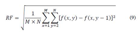 Spatial frequency (SF) is a modification of the energy of image gradient operator. It is defined as: