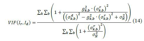 The common procedure for VIF estimation is to divide the images into 𝑘 sub-bands, each of which is divided in turn into 𝑏 blocks. The mutual information between the different models is estimated and VIF can be stated as:
