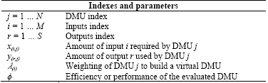 To create a DEA methodology for international market selection, DMUs represent countries with potential to import frozen bovine meat from Colombia, and DEA will be used to classify them to facilitate an IMS decision-making process. Therefore, the DEA model uses the notation presented in Table 2, where N DMU which will be evaluated consumes M inputs to generate S outputs.