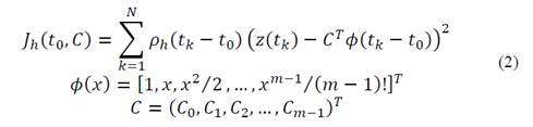 The LPA is a locally adaptive non-parametric technique, which provides estimates of the signal 𝑦 𝑡 ≈𝑦 𝑡 𝑘 defined in eq. (1) from the observations of 𝑧 𝑡 in a pointwise manner and using a polynomial fitting in a sliding window. In this estimation, the error should be as small as possible [22].